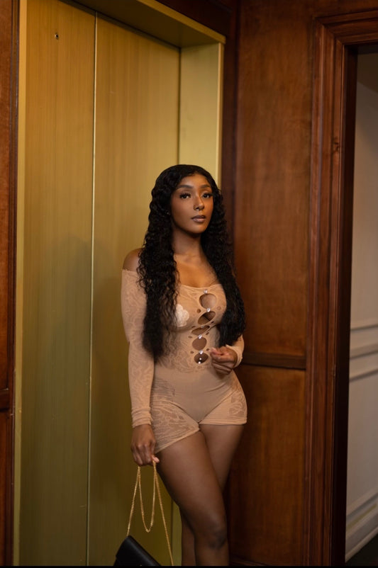 ‘Luxe Me’ Seamless Lace Romper - Taupe